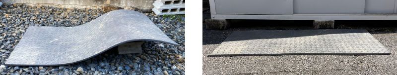 PVC製のため柔軟性に優れ、凹凸がある接地面にも敷きやすく、水はけが良いので濡れても滑りにくいといった利点もあるとしている。寸法は幅1メートル、長さ2メートル、厚さ1.3センチ。重さは1枚約35キロ。オープン価格。